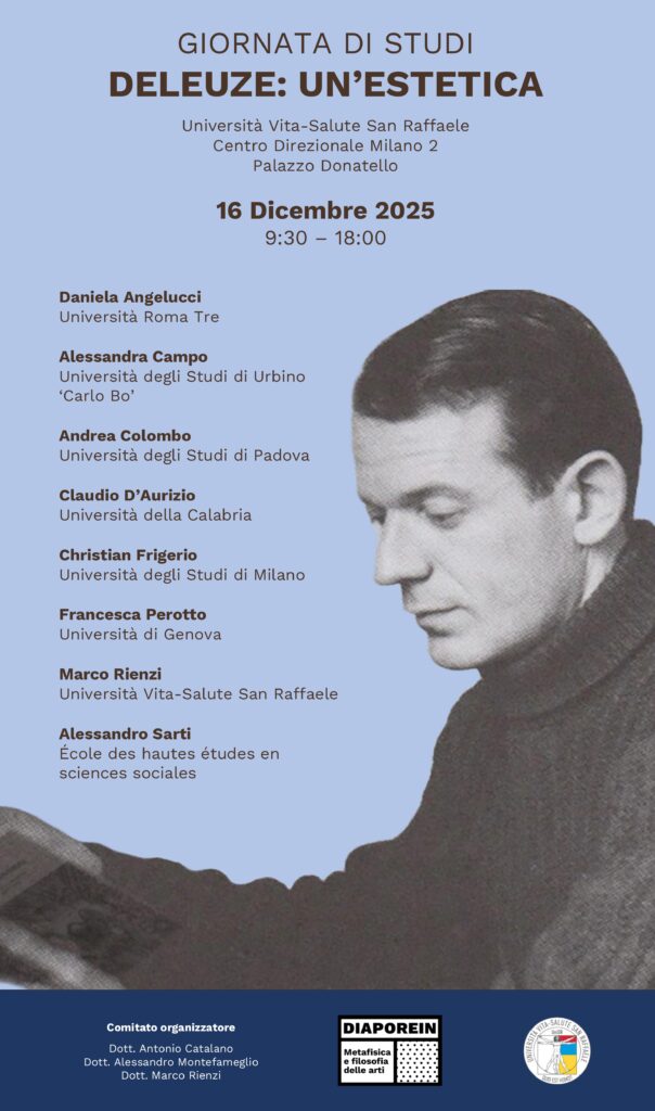 Vi aspettiamo martedì 16 dicembre 2025 alla giornata di studi “Deleuze: un’estetica”, organizzata in occasione centenario dalla nascita e del trentennale dalla morte di Gilles Deleuze.