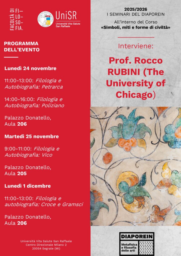 Vi aspettiamo ai seminari del corso “Simboli, miti e forme di civiltà” che saranno tenuti dal Prof. Rocco Rubini.